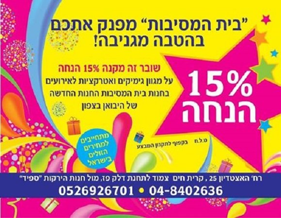 15% הנחה על כל החנות בהצגת קופון זה בלבד